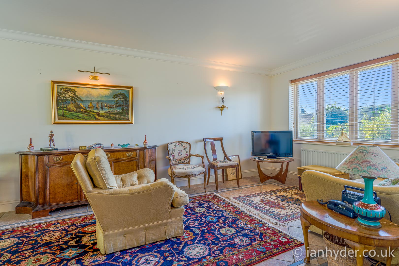 Tiled flooring, three radiators, various wall lighting, heating thermostat, double glazed double doors to rear garden and double glazed window to front elevation. Under stair storage cupboard with light, consumer unit and electric meters.