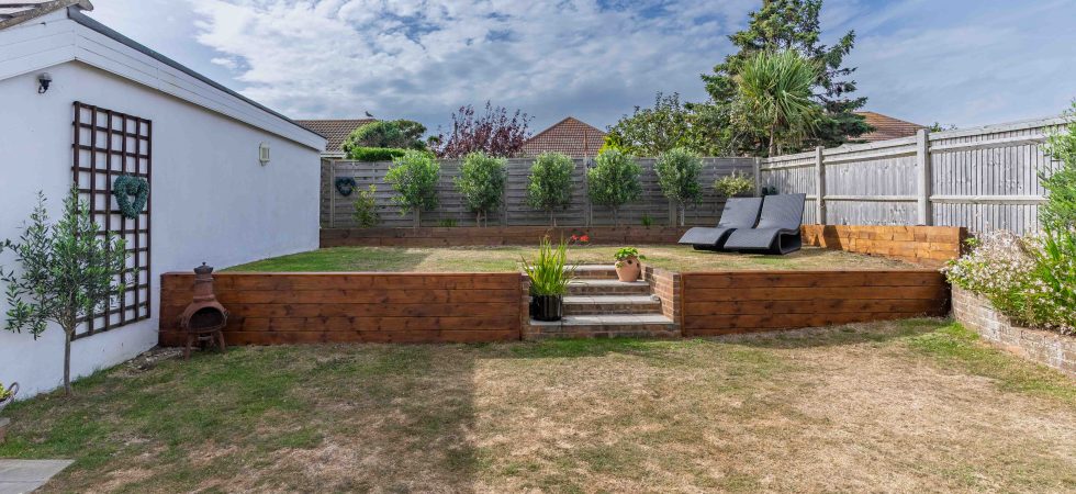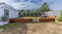 Enjoying a bright and sunny Westerly facing aspect. Laid to lawn, with paved seating area. Row of feature manurcured olive trees set in railway sleeper boarders. Water tap. established shrubs and plants and fenced boundaries.