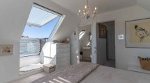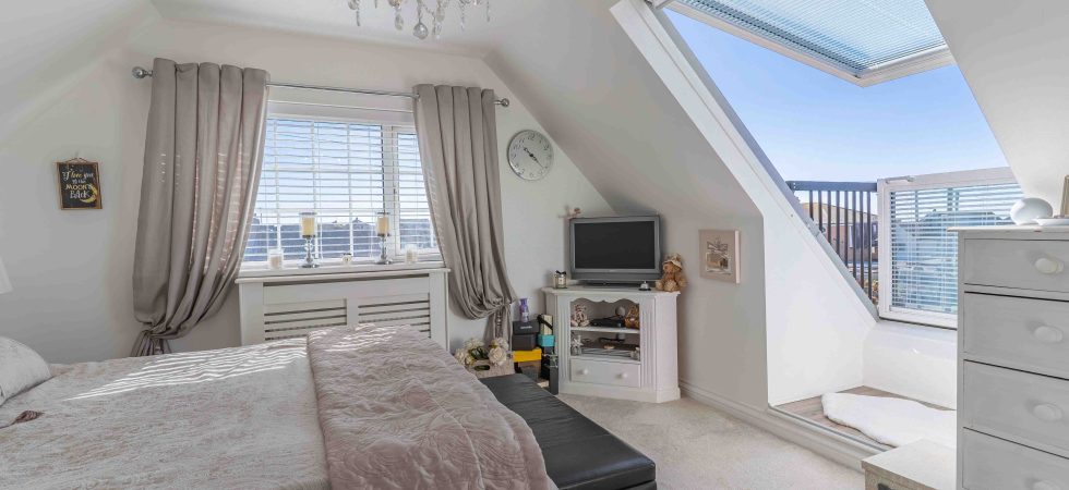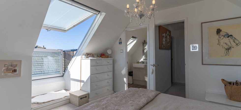 Double glazed window to the front elevation and feature Velux balcony window, also known as the Cabrio Balcony with southerly views, radiator and door to:
