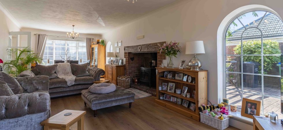 Comprising a most splendid room triple aspect room to front, side and sliding patio doors overlooking and accessing rear garden, laminate flooring, two radiators. Feature inglenook style fire place.