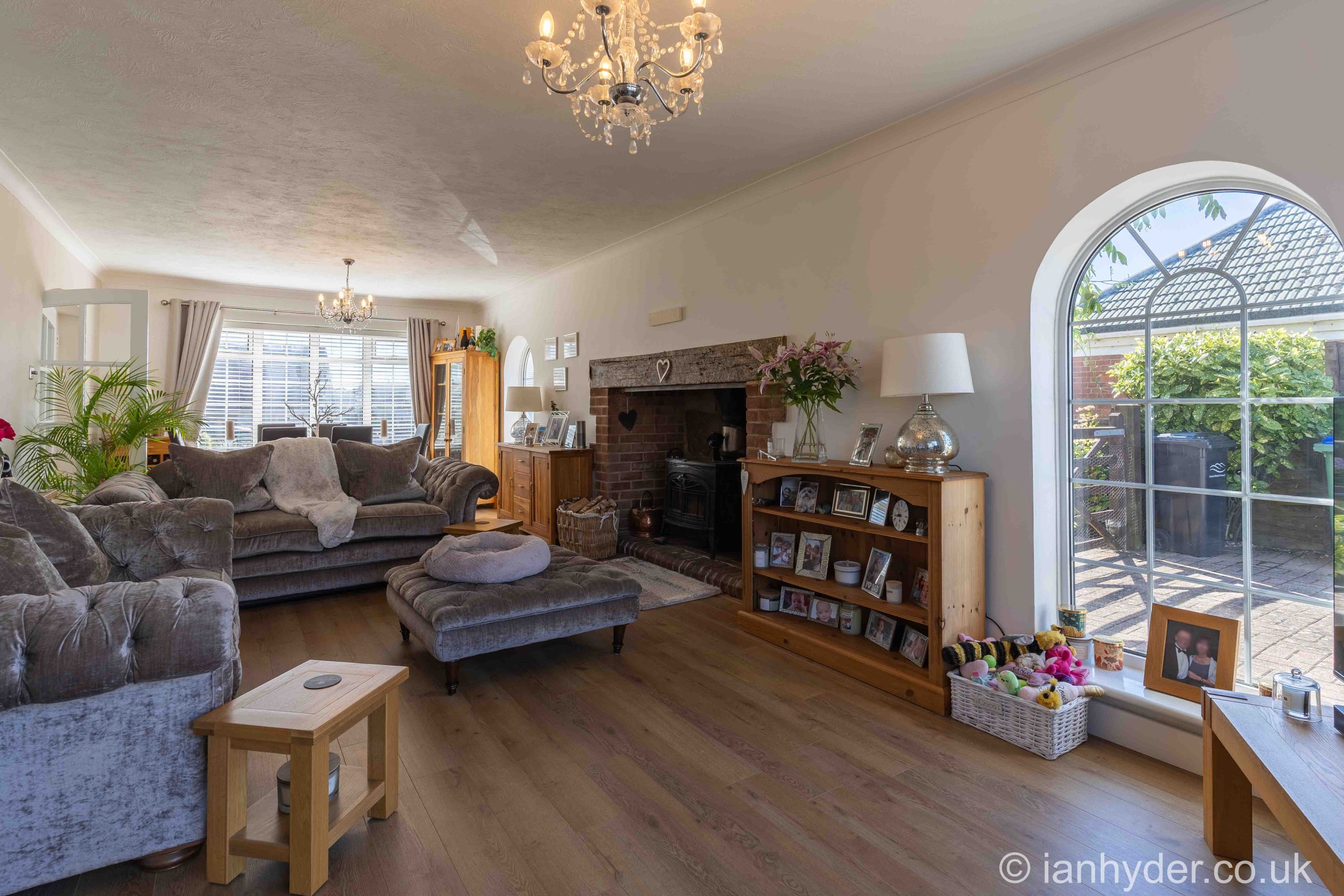 Comprising a most splendid room triple aspect room to front, side and sliding patio doors overlooking and accessing rear garden, laminate flooring, two radiators. Feature inglenook style fire place.