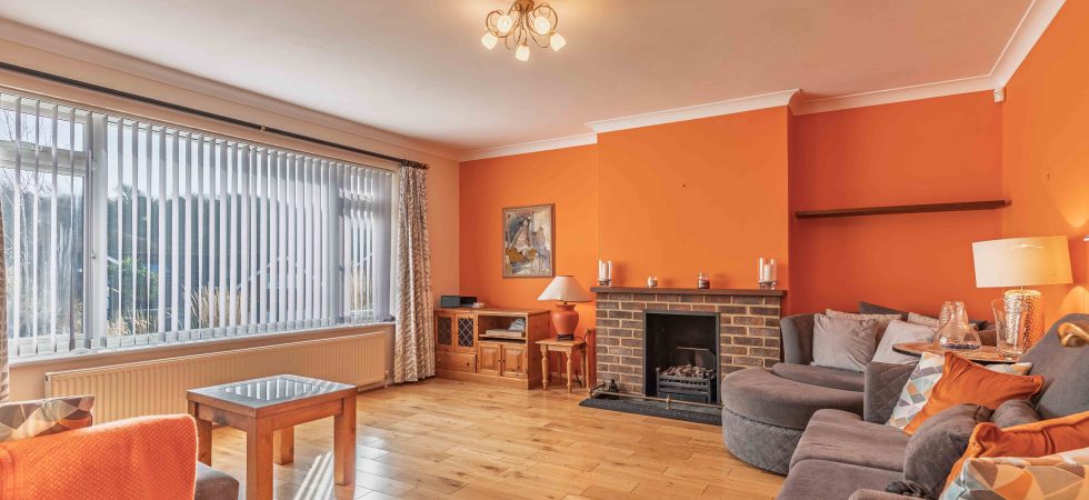 Double glazed windows overlooking front elevation, feature fireplace and surround. Strip wood flooring and radiator.