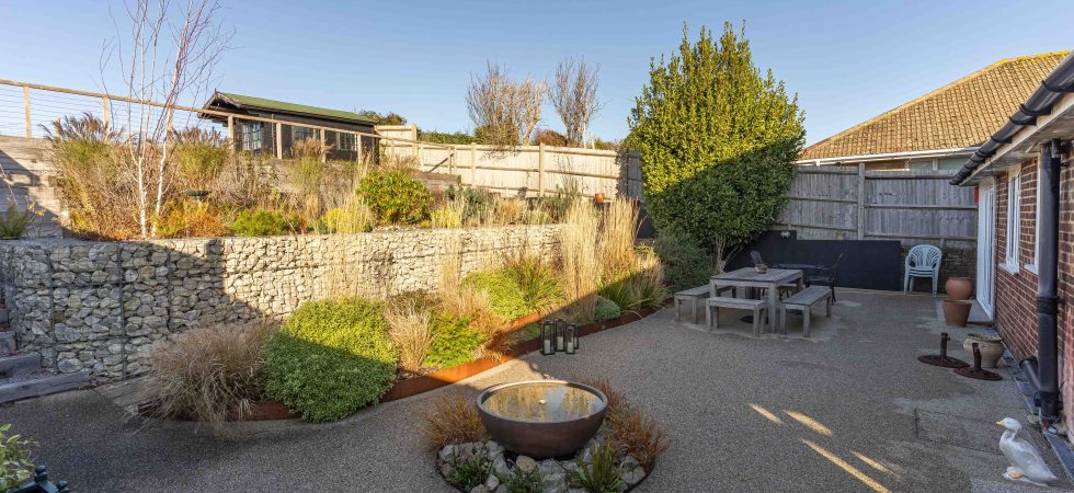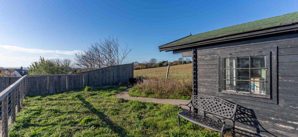 Again exstensivly landscaped, with sloping path to various levels. Top level has a Summer house with power and lighting. Views to downlands to the east and farmland to the west.